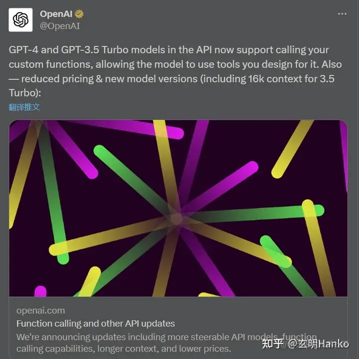 此外,GPT-3.5 Turbo的输入标记费用降低了25%(现在是每1K输入标记0.0015美元),立即生效。