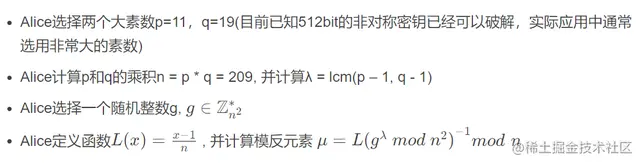 Alice将 n 和g 封装成公钥public-key = (n, g)