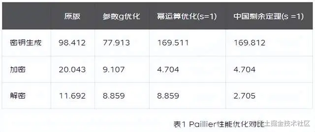 在使用g = n + 1后,实现密钥生成和加密过程的性能提升。