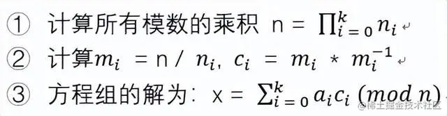 中国剩余定理(Chinese Remainder Theorem, CRT),又称为孙子定理,源于《孙子算经》,是数论中的一个关于一元线性同余方程组的定理,说明了一元线性同余方程组有解的准则以及求解方法。