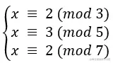 有物不知其数,三三数之剩二,五五数之剩三,七七数之剩二。问物几何?