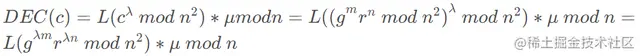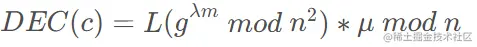 DEC(c) = (a_m_λ mod n2) * (a * λ mod n2)-1 mod n = m