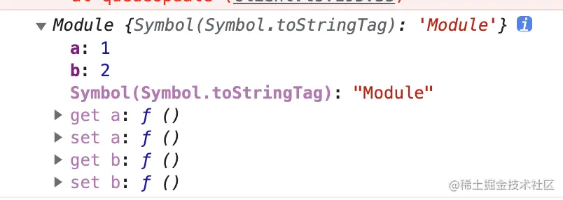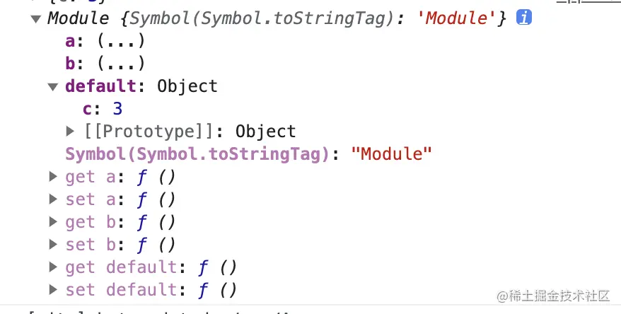 console.log(test, t) // 输出 {c: 3} Module {Symbol(Symbol.toStringTag): 'Module'}