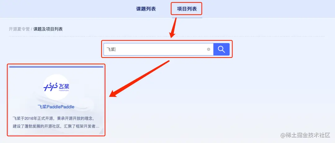 第二步:点击 “项目列表” 并搜索 “飞桨”找到飞桨项目
