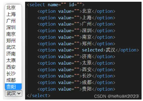 selected:下拉菜单的默认选中