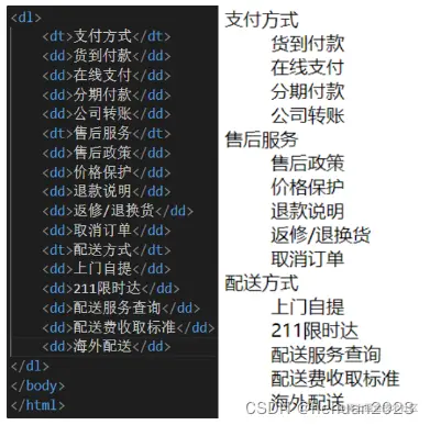 dl标签中只允许包含dt/dd标签 dt/dd标签可以包含任意内容