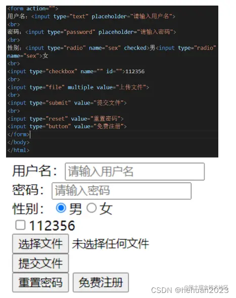 | input | submit | 提交按钮,用于提交 |
