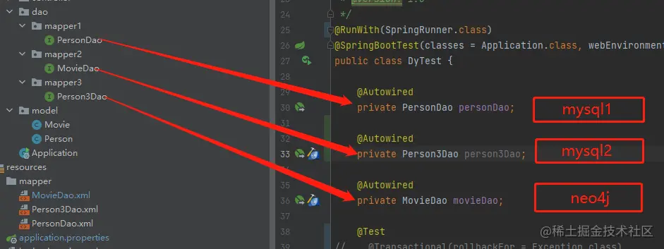 现在mysql1,2数据源都配置好了。配置MybatisDsNeo4jConfig的数据源跟上面一模一样。