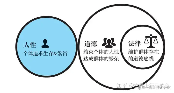 道德,是为了群体的繁荣,最后促进个体的生存、繁衍,大家共同达成的“社会契约”。道德,常常是反人性的。法律,是道德的子集,是维护群体存在的道德底线。
