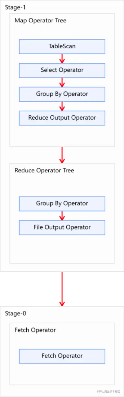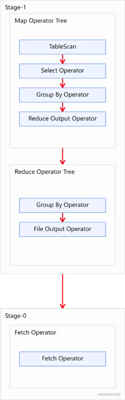 Explain呈现的执行计划,由一系列 Stage 组成,这一系列 Stage 具有依赖关系,每个Stage对应一个 MapReduce Job,或者一个文件系统操作等。