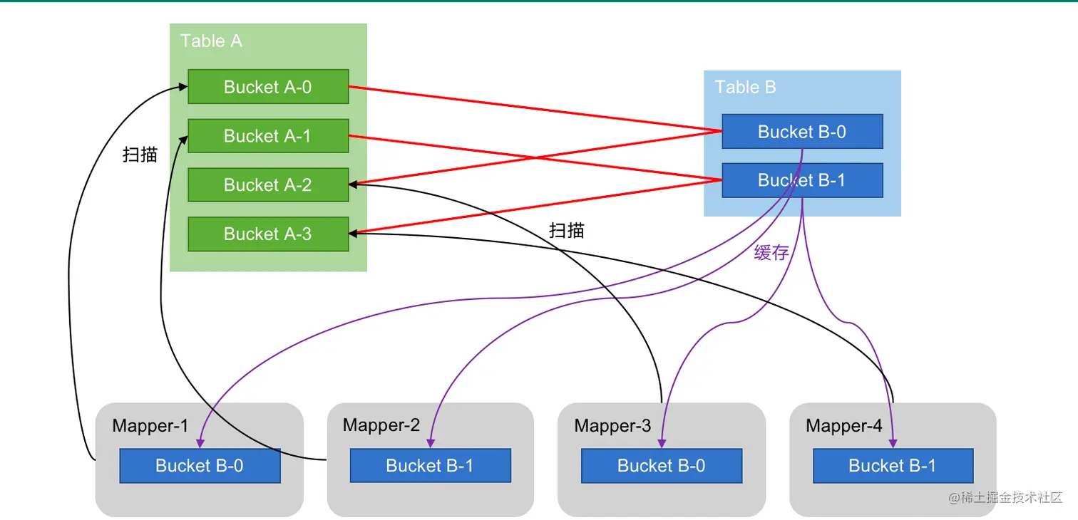 SMB Map Join要求参与join的表均为分桶表,且需保证分桶内的数据是有序的,且分桶字段、排序字段和关联字段为相同字段,且其中一张表的分桶数量是另外一张表分桶数量的整数倍。