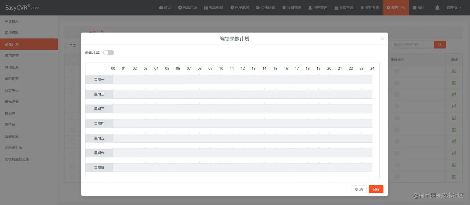 在EasyCVR【配置中心】—【录像计划】中,编辑录像计划,如图: