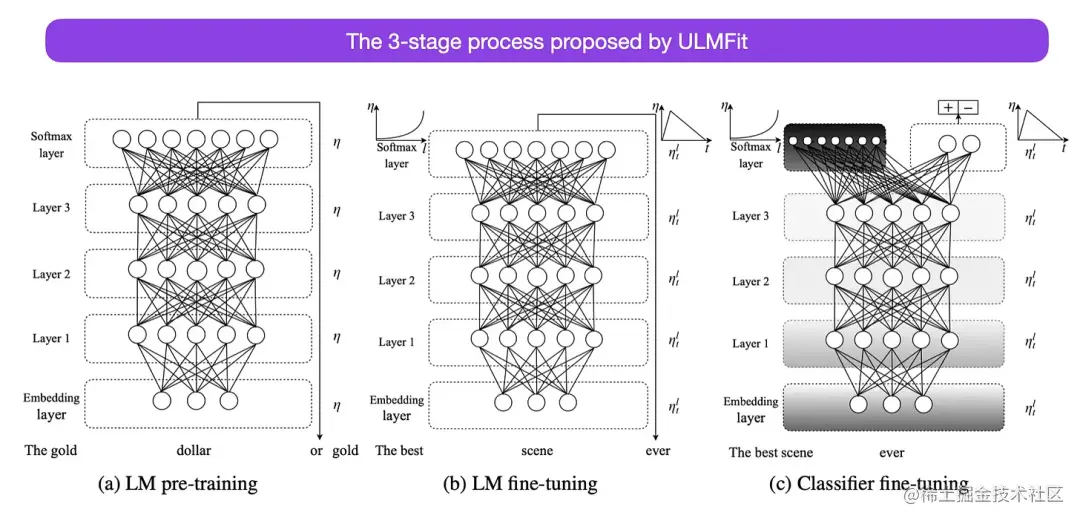 ULMFit 建议的语言模型微调过程分为三个阶段: