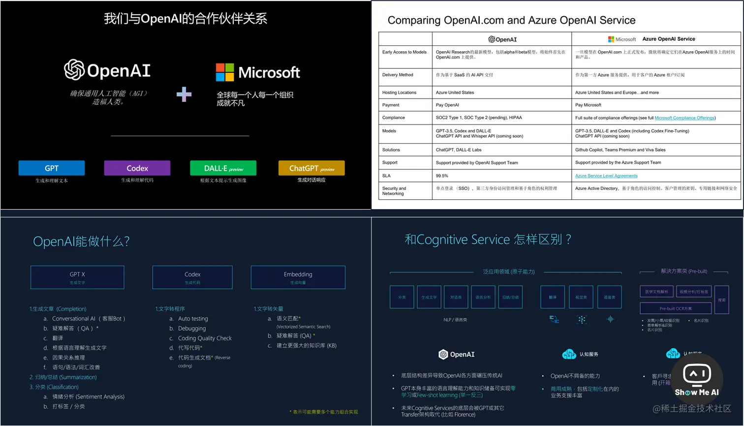这是一份微软官方文档,阐述了微软与 OpenAI 之间的合作关系,并详细地对比了 OpenAI、微软 Azure OpenAI 所提供服务的差异与关联,帮助用户更好地选择&成长。