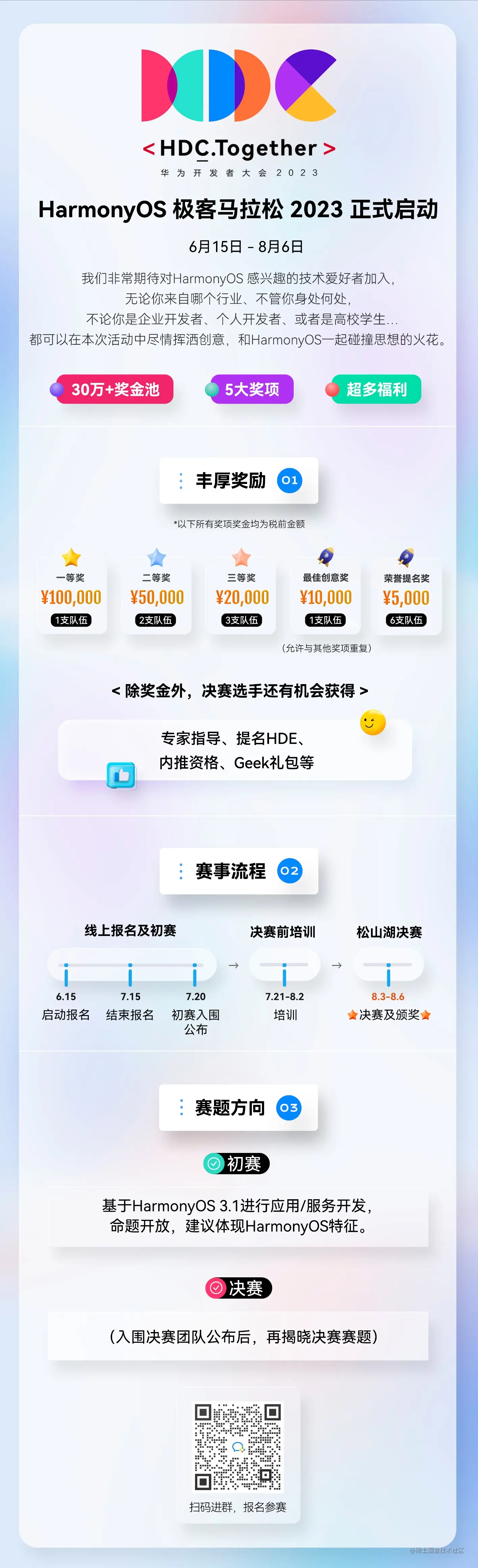2023年6月15日, HarmonyOS极客马拉松2023开赛!期待各位开发者极客朋友一起,探索移动应用和服务的更多可能性!