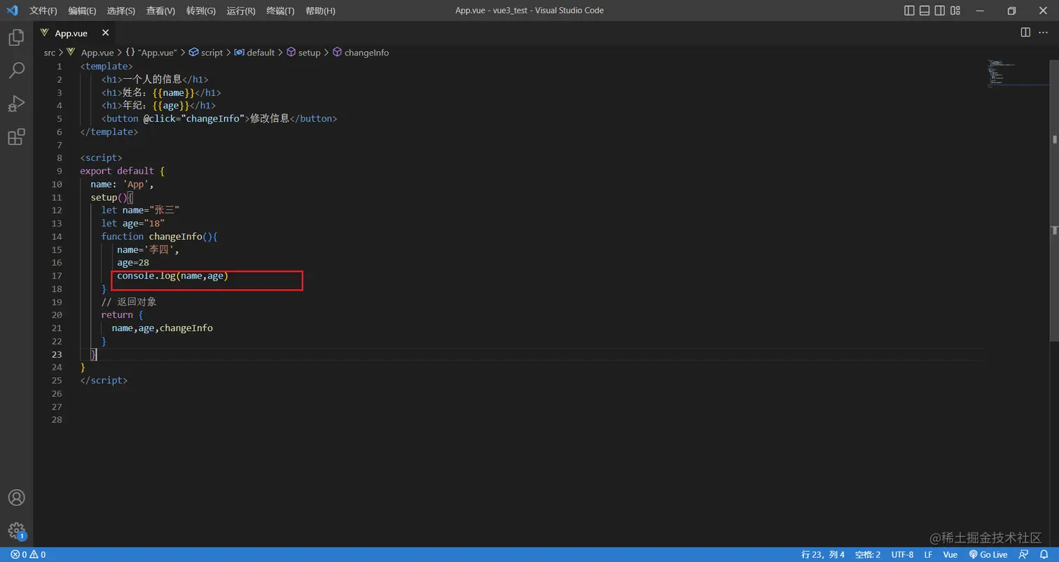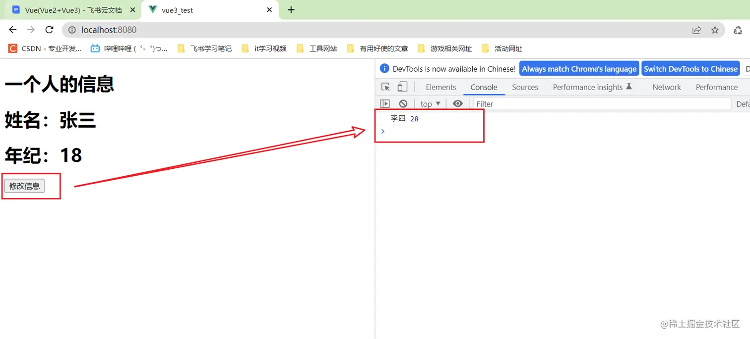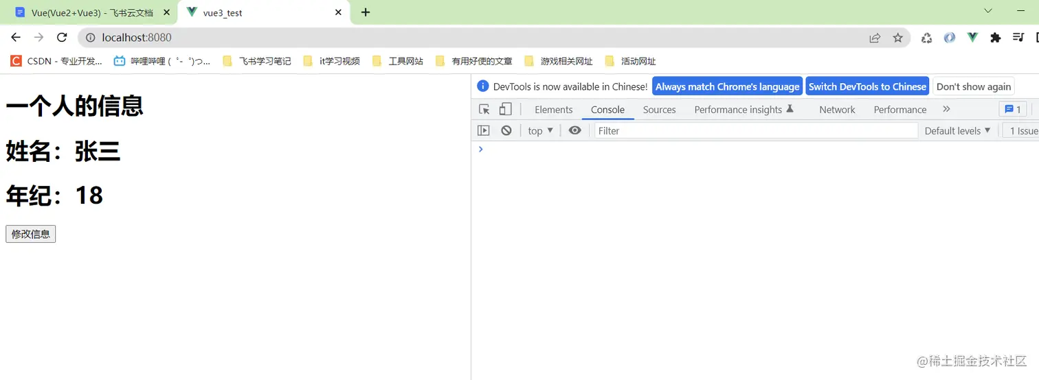 问题是因为定义的name和age都是普通的字符串,不是响应式的数据,所以vue是不会检测到的,那么问题来了,如果把普通的数据定义成vue能监测到的响应式的数据呢?