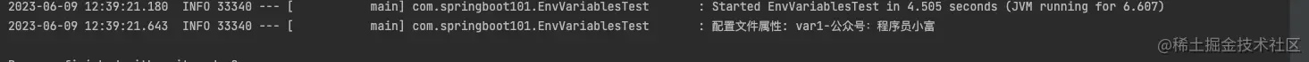 只要在变量上加注解 @Value("${env101.var1}")就可以了,@Value 注解会自动将配置文件中的env101.var1属性值注入到var1字段中,跑个单元测试看一下结果。