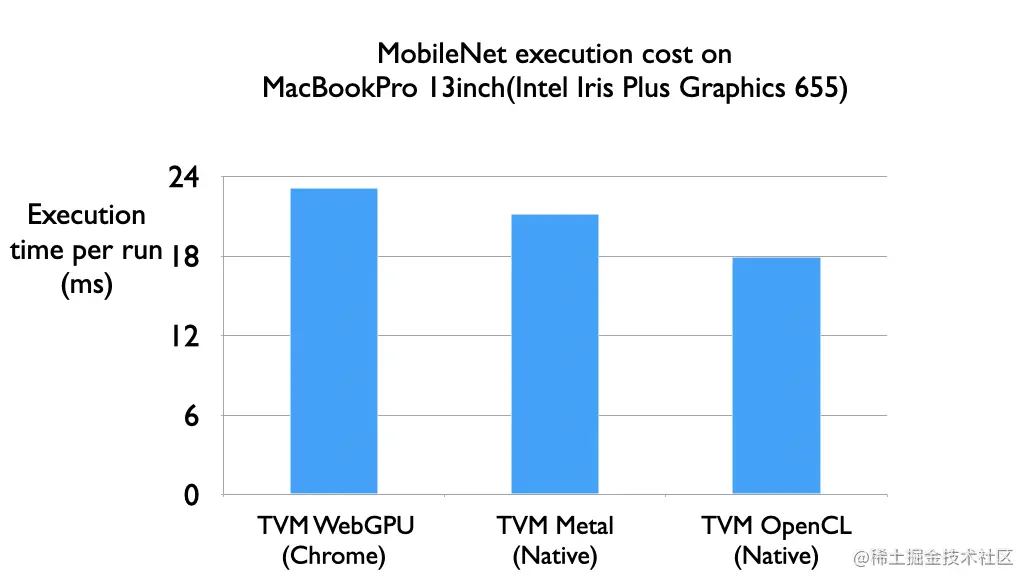 最后看下官方提供的性能评测。以模型 MobileNet 为例,Chrome WebGPU 下的性能和 Native Metal (MacOS)相差并不是很大。