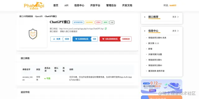 开发者用户成功充值后,可以查看所需要调用的API接口,例如,ChatGPT接口费用是:调用一次的接口单价是:0.000002元。