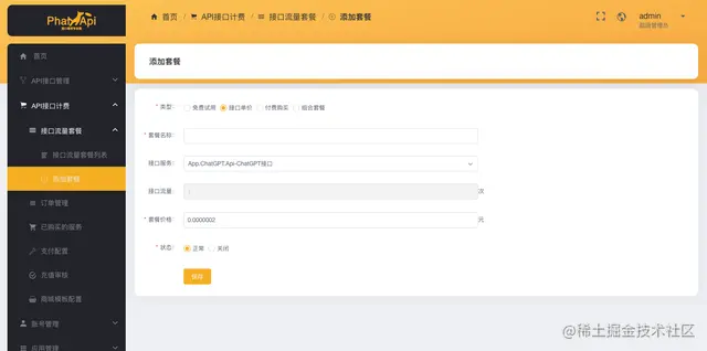 首先,管理员需要在后台录入需要收费的接口单价。