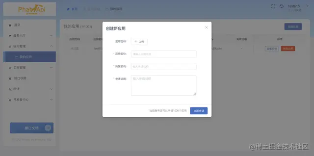 申请创建新应用-演示地址:
