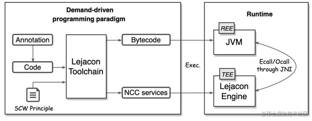 该研究提出了 Java 机密计算框架 Lejacon。该框架创新地采用了适用于 SGX 计算模型的 Java 分离编译技术,并提供了跨执行环境的运行时支持,兼顾非安全性敏感代码的平台无关性同时将 SGX 适配于 Java 工作流。