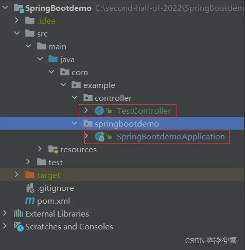 在 SpringBootdemoApplication同文件夹下 创建一个TestController类