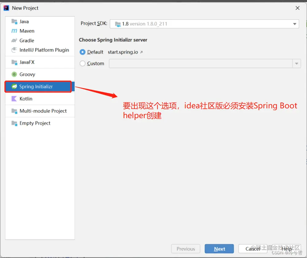Idea 社区版(其他版本也同样适用),要先安装 Spring Boot Helper 插件才能创建 Spring Boot 项目,如下图所示: