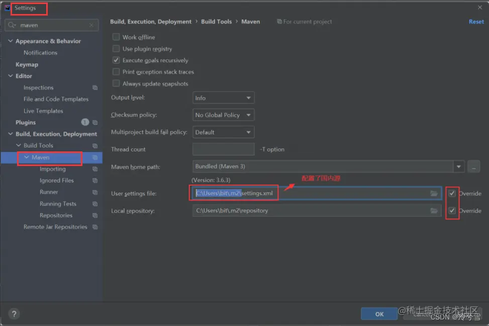为了加速 Spring Boot 项⽬的下载,在打开项目之前,请先确认自己的 Maven 已经配置为国内源: