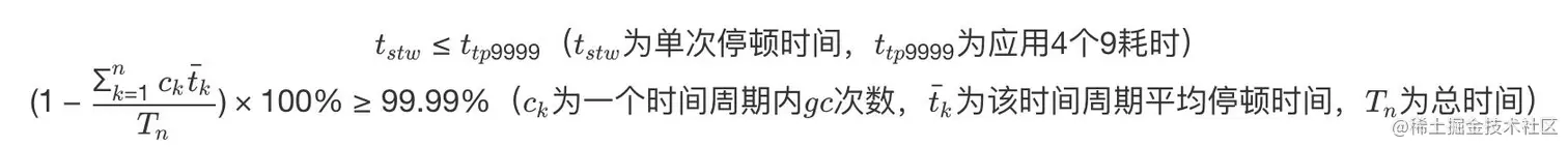 目前各大互联网公司的系统基本都更追求低延时,避免一次 GC 停顿的时间过长对用户体验造成损失,衡量指标需要结合一下应用服务的 SLA,主要如下两点来判断: