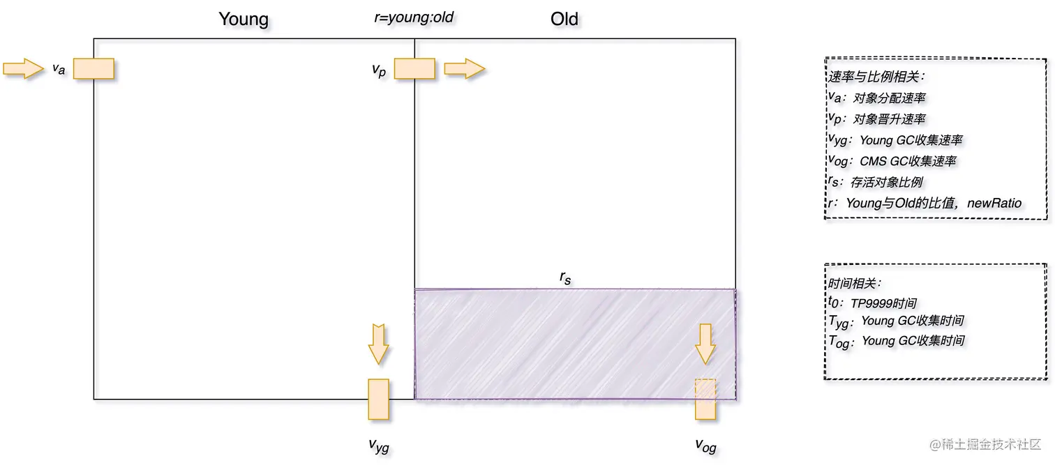 - 制定标准: 这块内容其实非常重要,但大部分系统都是缺失的,笔者过往面试的同学中只有不到一成的同学能给出自己的系统 GC 标准到底什么样,其他的都是用的统一指标模板,缺少预见性,具体指标制定可以参考 3.1 中的内容,需要结合应用系统的 TP9999 时间和延迟、吞吐量等设定具体的指标,而不是被问题驱动。