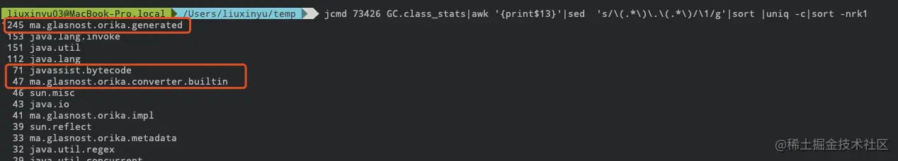 接下来可以使用 Btrace,尝试定位具体的调用栈。Btrace 是 Sun 推出的一款 Java 追踪、监控工具,可以在不停机的情况下对线上的 Java 程序进行监控。如下图所示,通过 Btrace 定位出项目中的 ZipHelper 在频繁调用 GZIPInputStream ,在堆外内存分配对象。