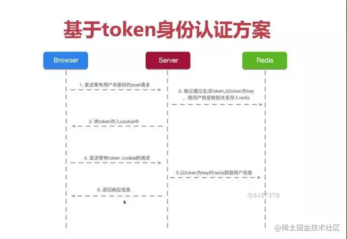 从上图,我们可以很清晰的看到,token 方案的实现主要有以下几个步骤: