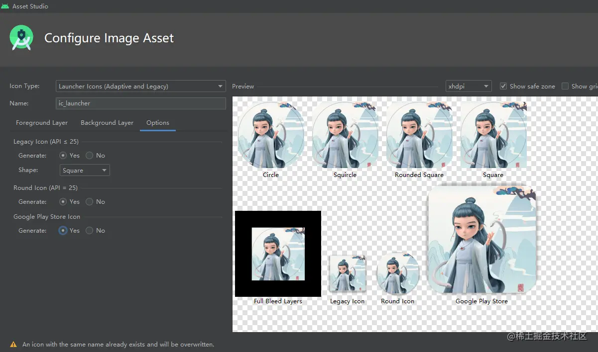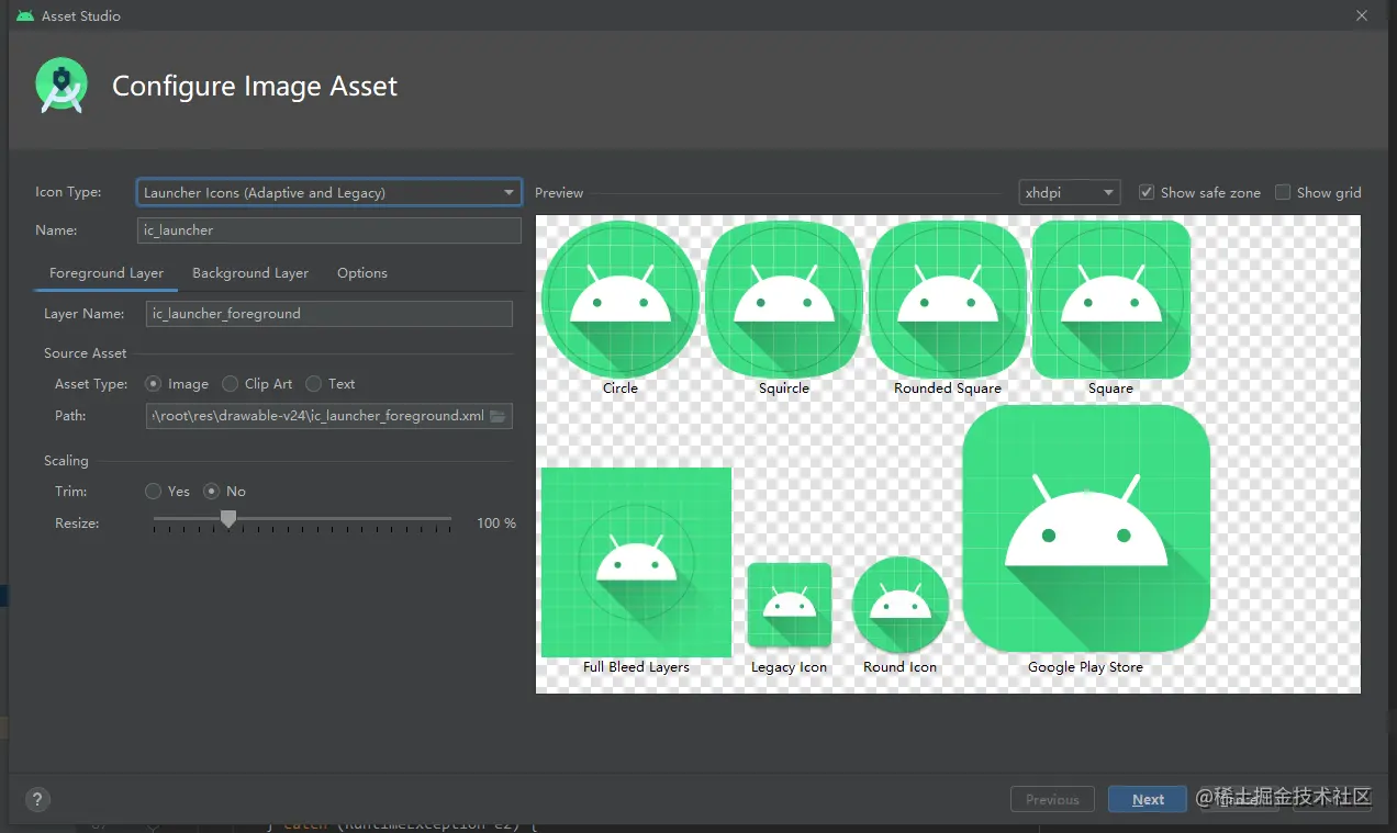 打开 Image Asset Studio 后,您可以按照以下步骤添加自适应和旧版图标: