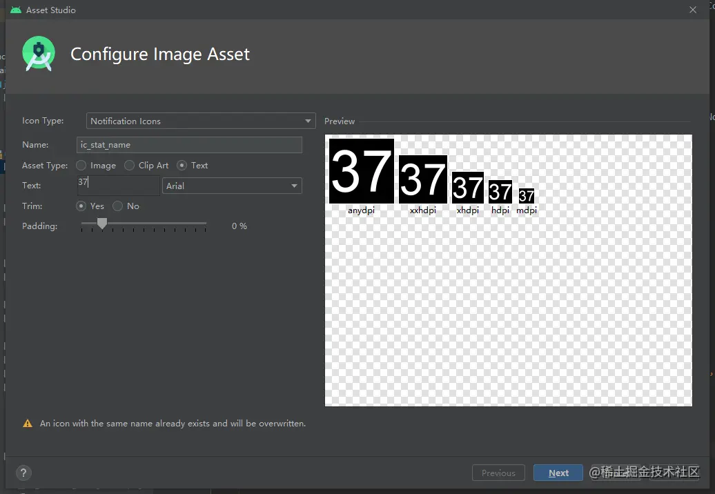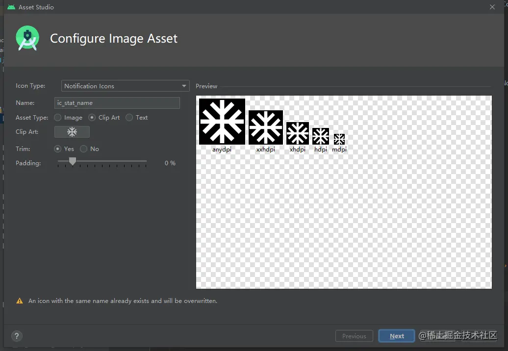 打开 Image Asset Studio 后,您可以按照以下步骤添加通知图标: