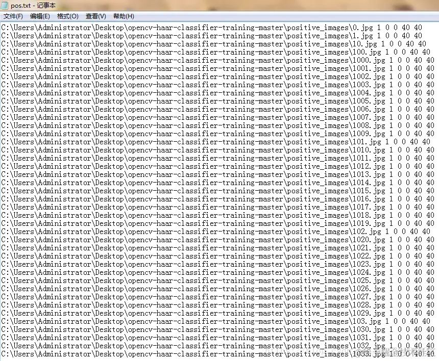 正样本路径文件(pos.txt)格式如下:
