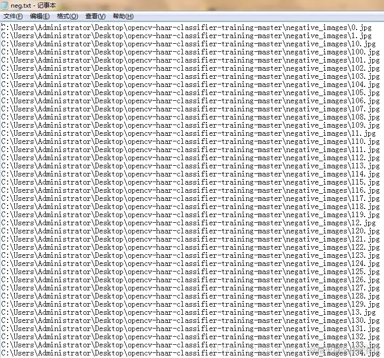 正样本路径文件(neg.txt)格式如下: