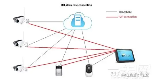 大家都知道WEBRTC是谷歌开源代码,主要用于视频会议使用,特点就是低延时。我们采用WEBRTC的方式,重构代码且适用于低端嵌入式芯片的监控行业,且接入ALEXA,采用的是P2P的传输模式,音视频传输不费流量,需要流量的仅仅只是在信令传输,这个流量几乎忽略不计,同时也可以双向语音对讲。