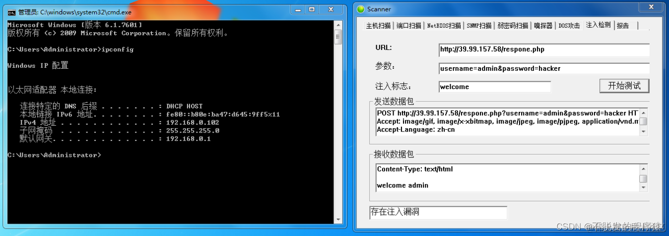 下图 展示的是注入检测功能模块的界面: