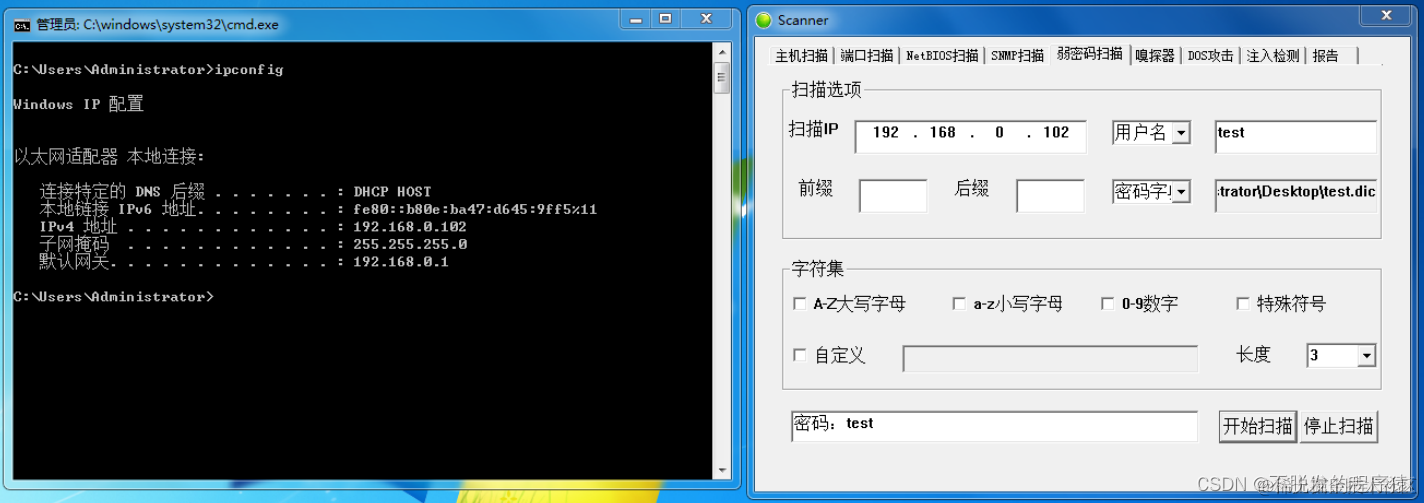 下图 展示的是弱密码扫描功能模块的界面:
