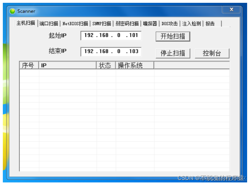 网络扫描器主界面如下图 所示: