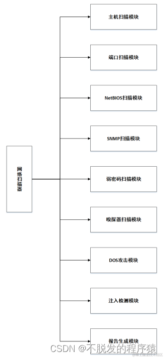 本设计的最终目标是打造一个具有多种扫描功能的网络扫描器。该扫描器具有以下功能: