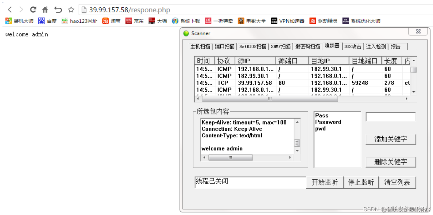 下图 展示的是嗅探器扫描功能模块的界面: