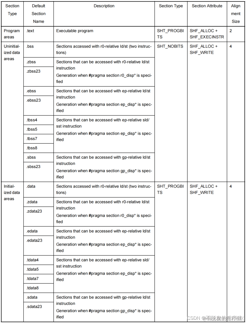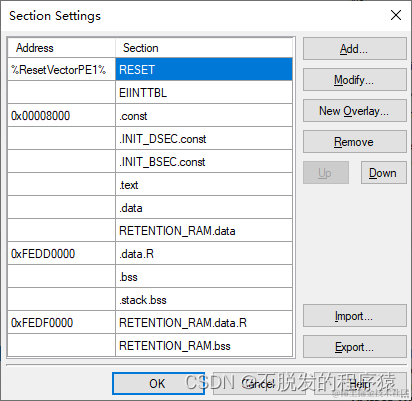 在文章:瑞萨RH850 CS+环境下设置堆和栈空间和瑞萨IDE:CS+ for CC进行BootLoader升级时开发环境配置中,讲解到Sections字段的使用。