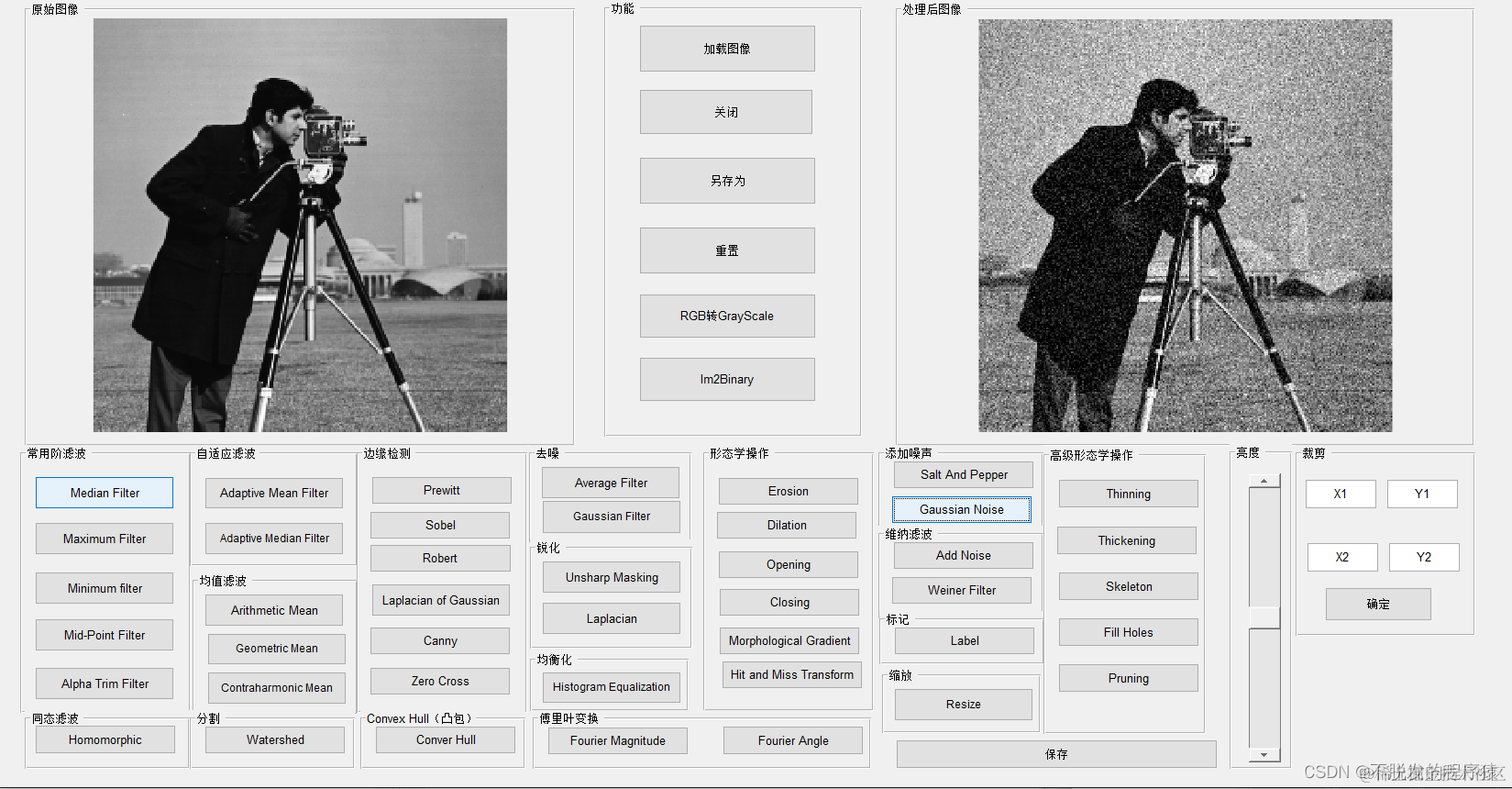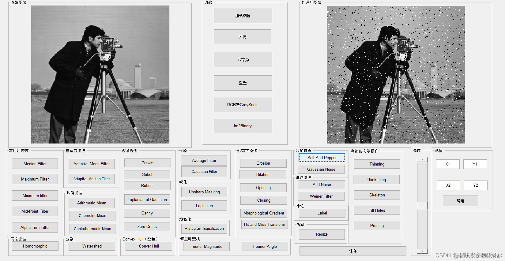 本篇博文使用MATLAB实现对添加了噪声的图像,使用滤波器对图像进行平滑处理,实现图像滤波及噪声消除。