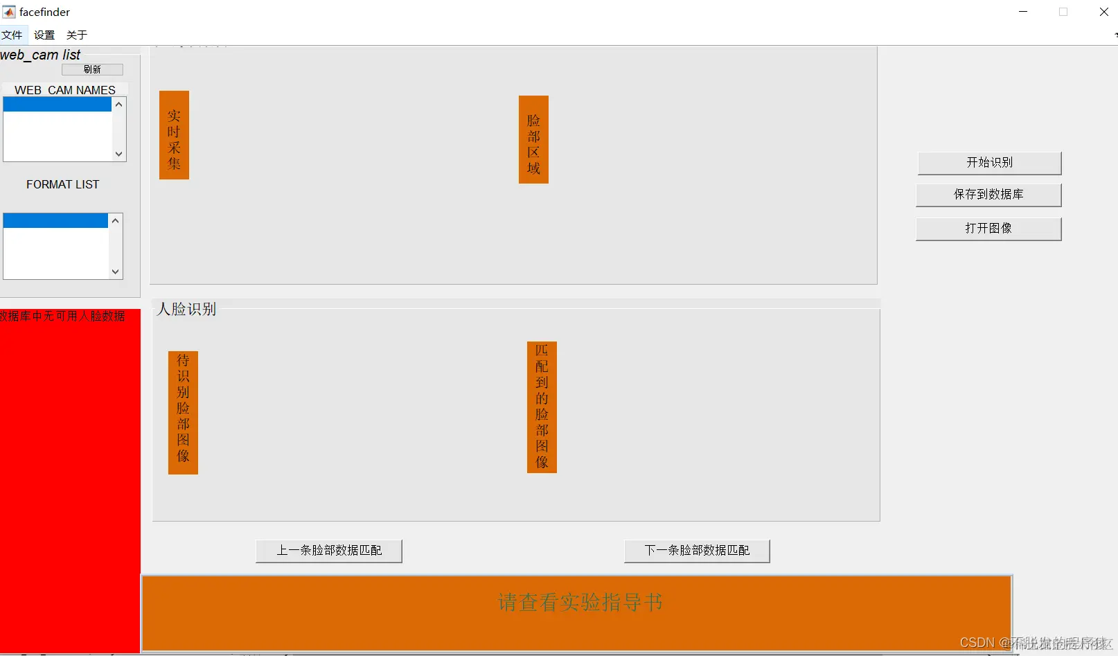 初次运行需要保存人脸数据到数据库,否则会弹出警告对话框,状态栏显示提示信息,如下图所示:
