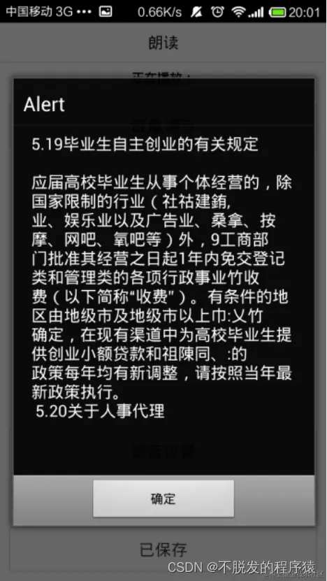 | 10 | 语音设置 | 在朗读界面点击“语音设置”按钮,会跳转至系统语音设置界面 | 是 |