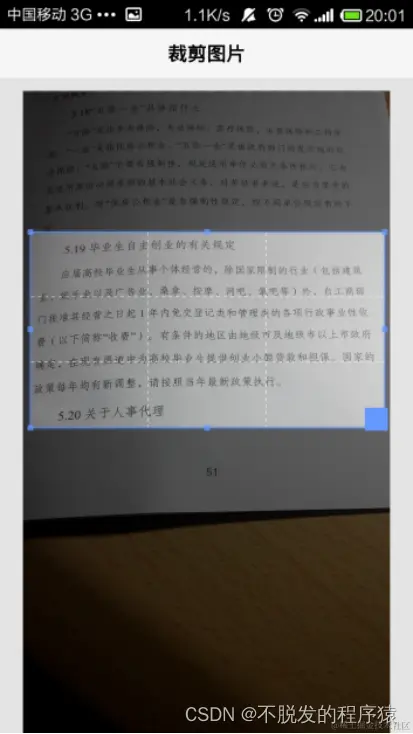 | 3 | 裁剪图片 | 拍照完成后进入裁剪界面,可以使用选框对图片进行任意尺寸的裁剪 | 是 |