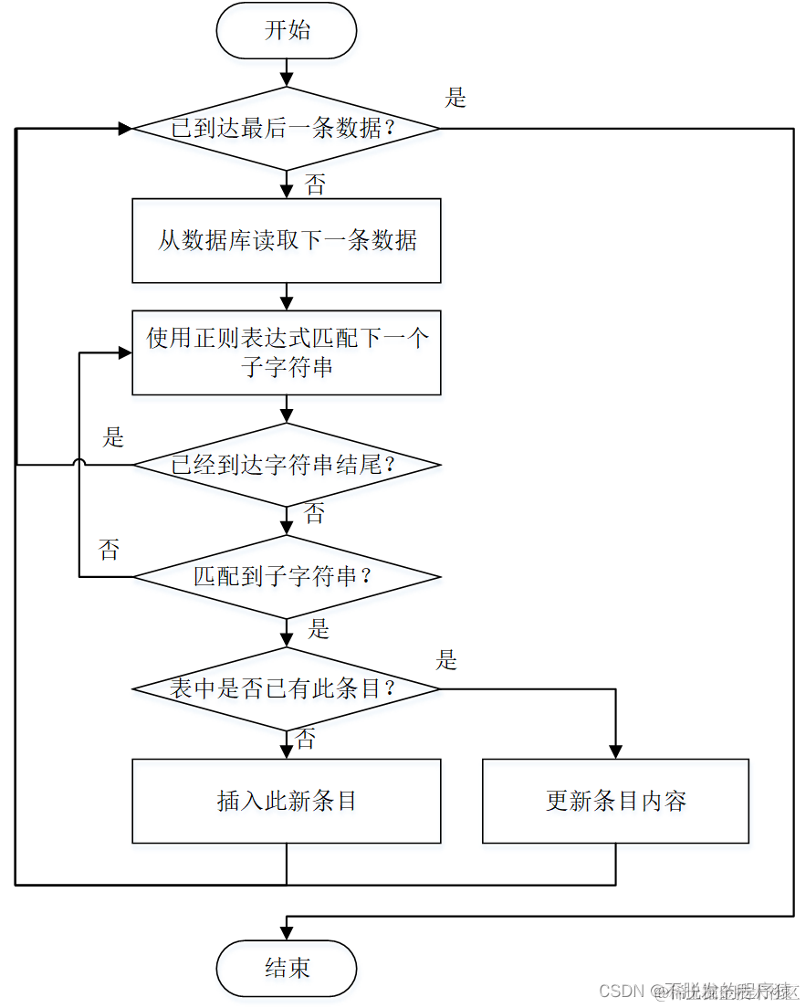 由于原始数据并不能直接拿来使用,因此需要按照之前设计的数据库,将三个表中的原始数据清洗后,存入新设计的表中,程序流程如下图所示:
