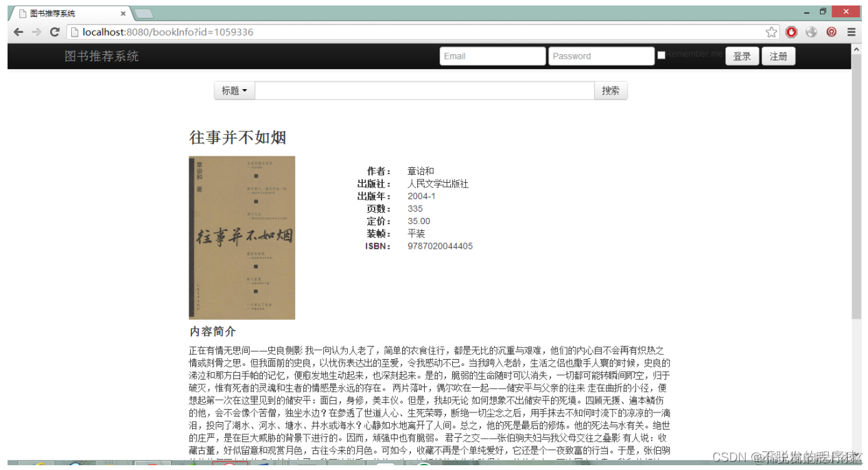 对图书的缩略图、内容以及作者简介做了展示,还有登录失败后会跳转到的登录页面,注册按钮点击后跳转到的注册页面,相对于其它两个相对功能较单一,性能也没有太大的提升空间。